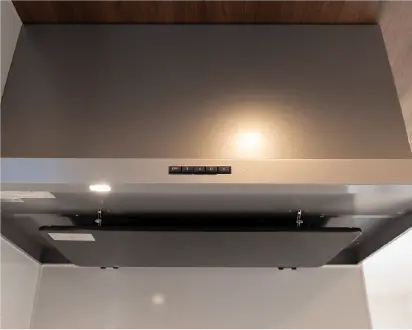 換気能力が高く、油汚れも落ちやすい高品位ホーローを採用した整流板付レンジフードは、換気扇も容易に脱着ができ、丸洗いが可能。