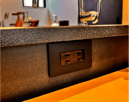 料理家電の使い勝手を考慮し、シンク前に2口コンセントを設置。