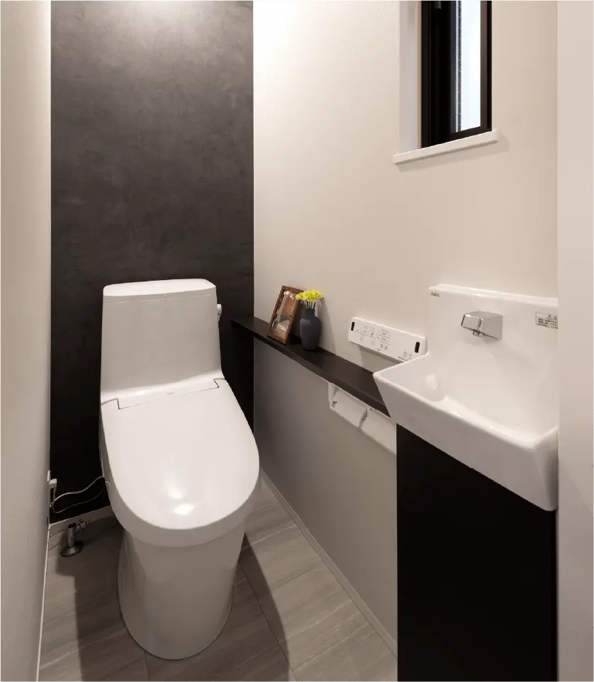 外観デザインに加え、外壁材にも意匠性を施し、周囲の住宅と調和しながらも存在感のある外観を実現。 道路側正面外壁にはプラチナコートを採用し、紫外線による色褪せを抑制。 さらに外壁全体にマイクロガードを施すことで、汚れが付着しにくく、美観を長期間維持します。 ※プラチナコートは道路側正面外壁のアクセント外壁部のみ採用。