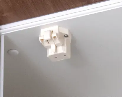 地震への備えとして吊戸棚に耐震ラッチを採用。 地震の揺れを感じると扉をロックし、食器などの落下を防止。