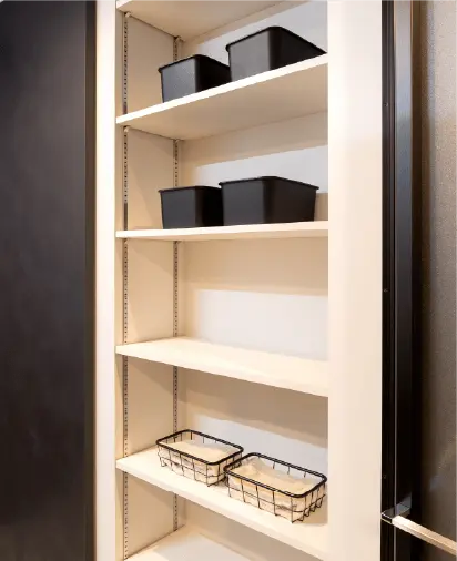 タオルや下着などのストックに重宝するリネン庫。 棚の高さを用途に合わせて変えることができます。